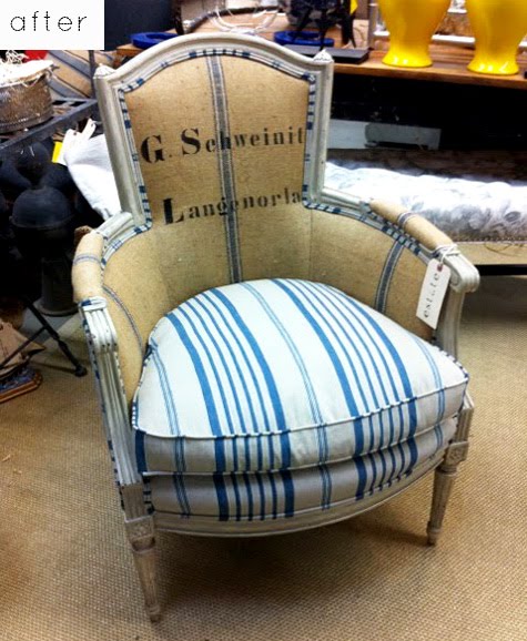Vintage Grain Sacks are popping up everywhere. What was once considered a utilitarian vessel for the storage and transport of dry goods has now become the upholstery fabric of choice for designers everywhere. Used to cover accent pillows, upholster chairs, and even as artwork themselves, these one-of-a-kind grain sacks have become a statement among designers who embrace the re-use of old, time-worn, and collected materials.